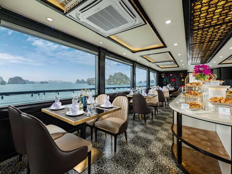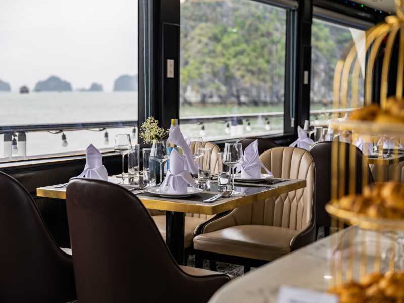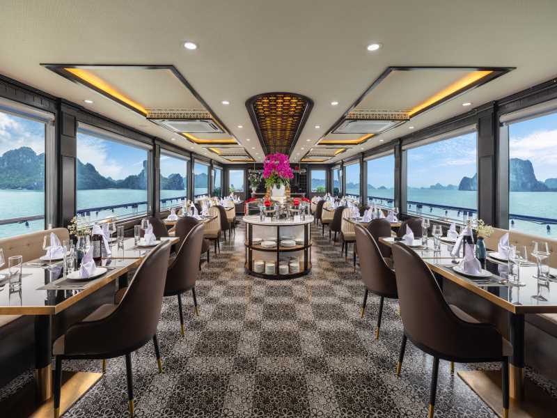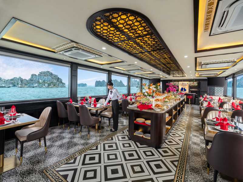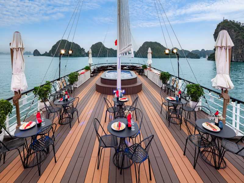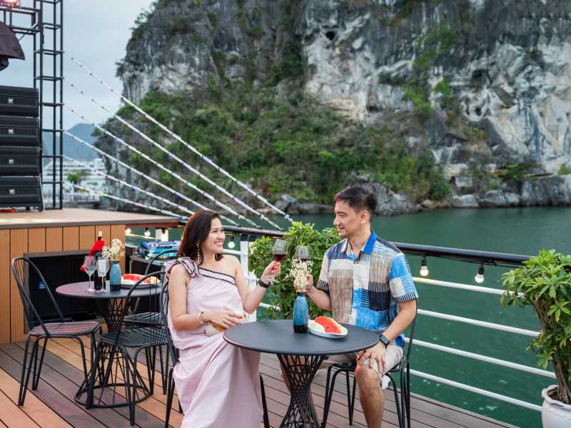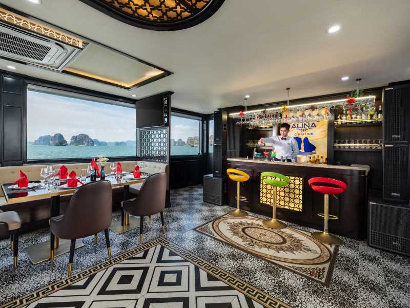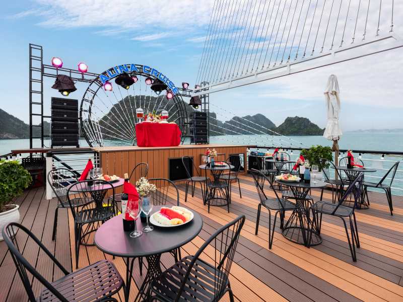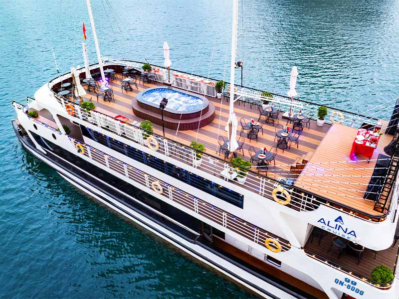 Alina Cruise, launched in 2025, is a boutique modern vessel designed to offer a vibrant and stylish 7-hour escape through the breathtaking landscapes of Halong Bay. The ship features premier amenities, including a luxury jacuzzi, a panoramic sundeck, and a unique live music stage for performances amidst the sea. Your journey will sail past the serene Bai Tu Long Area to reach iconic destinations such as Sung Sot Cave, Luon Cave, and Titop Island, combining high-end entertainment with the natural wonders of the heritage site.