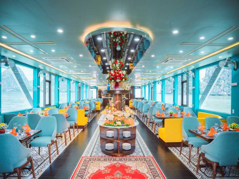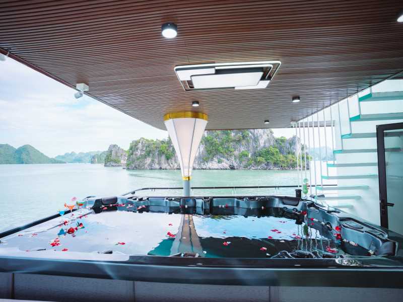 Apollo Cruise is a stylish and modern vessel designed to offer a high-end experience through the breathtaking scenery of Halong Bay. The cruise features premium amenities, including a luxury restaurant with a buffet lunch, a relaxing jacuzzi, and a panoramic sundeck for ultimate comfort. During the 6-hour journey, guests will explore iconic landmarks such as Sung Sot Cave, Luon Cave, and Titop Island, followed by a delightful sunset party as the boat sails back to the harbor.