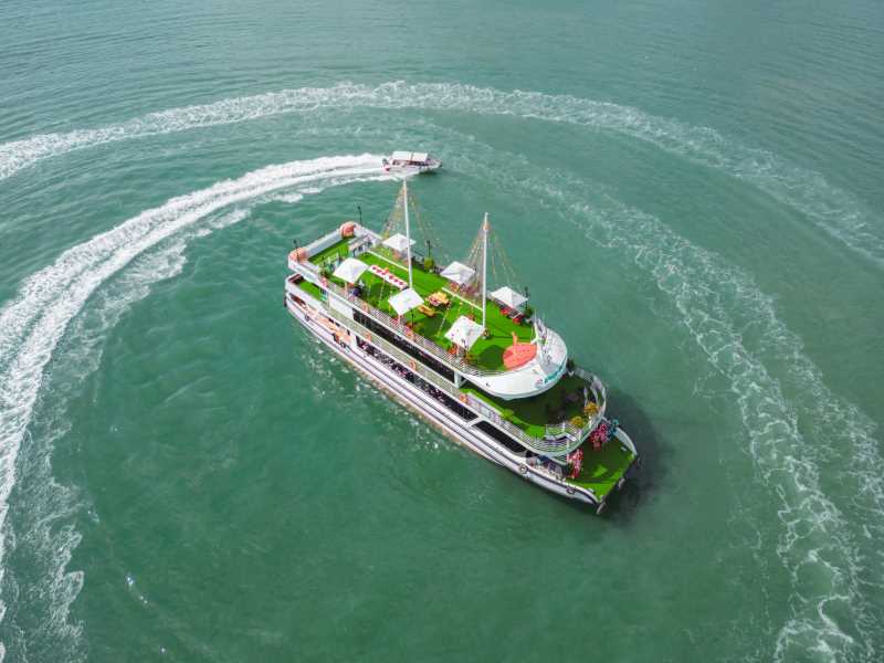 12:00: Arrive at Tuan Chau Harbor, get on the Luxury Cruise with our crew’s warm welcome