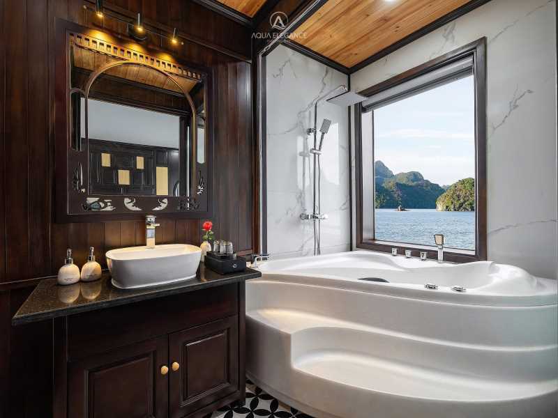 Aqua Elegance Cruise is a brand-new 5-star vessel launched in 2024, featuring a sophisticated and modern design that offers a premier retreat in Halong Bay & Lan Ha Bay. The ship boasts premium facilities such as an outdoor Jacuzzi, a professional spa, and 21 luxury cabins with private balconies and sea-view bathtubs. Its 3D2N journey takes you to iconic highlights including Sung Sot Cave, Titop Island, Trinh Nu Cave, Ba Trai Dao Beach, a traditional Pearl Farm, and the scenic Luon Cave.