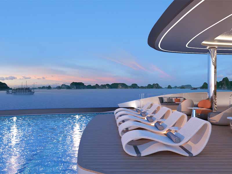Indulge in a new era of 6-star opulence aboard Athena Premium Cruise, a neoclassical masterpiece launched in 2025, the pinnacle of luxury in Halong Bay. With 41 palatial cabins, ATHENA PREMIUM CRUISE includes a 400m² Imperial Suite; this vessel offers world-class indulgence through its four-season infinity pool, private Onsen saunas, and a 3D VR golf lounge. Your elite 2D1N voyage is curated for perfection, blending personalized butler service with breathtaking visits to the magnificent Sung Sot Cave, the emerald waters of Luon Cave, and the panoramic heights of Titop Island.