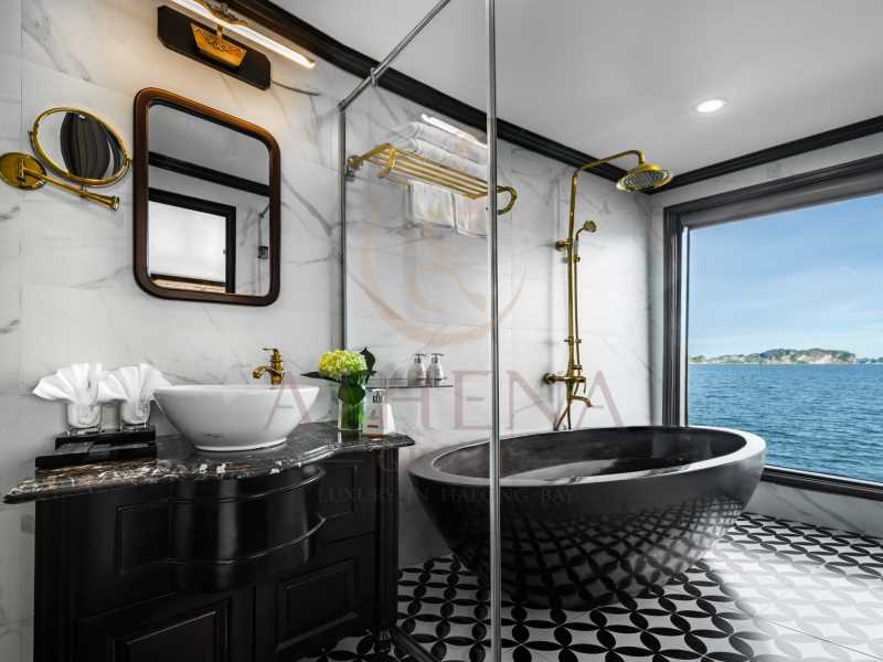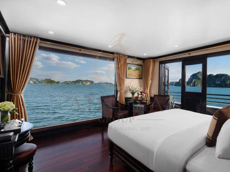 Experience the height of 5-star luxury aboard the Athena Royal Cruise, a sophisticated iron vessel featuring 22 elegant cabins designed with a sleek, modern flair on Halong Bay. Every suite serves as your private observatory with a personal balcony, while the top deck offers ultimate relaxation with an open-air Jacuzzi and a soothing spa. Athena Royal Cruise, your 2D1N voyage through the emerald waters of Halong Bay is perfectly curated to showcase the majestic Sung Sot Cave, the panoramic views from Titop Island, and the tranquil beauty of Luon Cave.