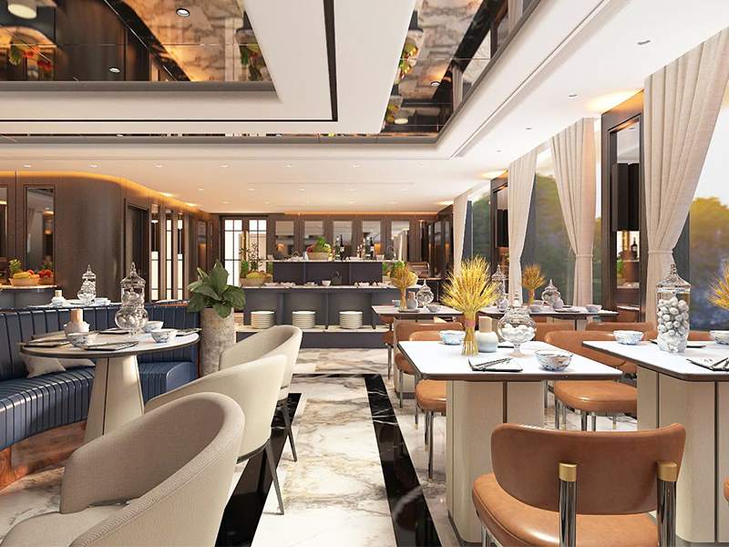 Stretching 112 meters in length, Celina of the Sea features state-of-the-art facilities, including two modern elevators serving all five main decks for effortless accessibility. Guests can enjoy high-speed Starlink internet, a saltwater electrolysis pool, and mini-golf right on board. The cruise offers a curated, relaxing itinerary through Lan Ha Bay, focusing on pristine spots like Ba Trai Dao and Bright & Dark Cave. Whether savoring fusion cuisine or practicing Tai Chi at dawn, Celina provides an exquisite escape where contemporary luxury meets the timeless beauty of the bay.