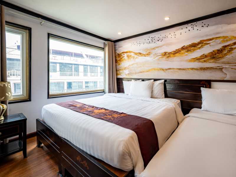 06:00 Warm up your day with a Tai Chi lesson on the sundeck with a breathtaking view as the sunrises on Halong Bay. Sunrise photo-hunting in the bay is once a lifetime experience; however, this activity is not mandatory. You can choose to stay in bed.