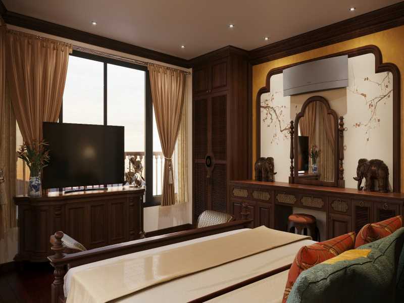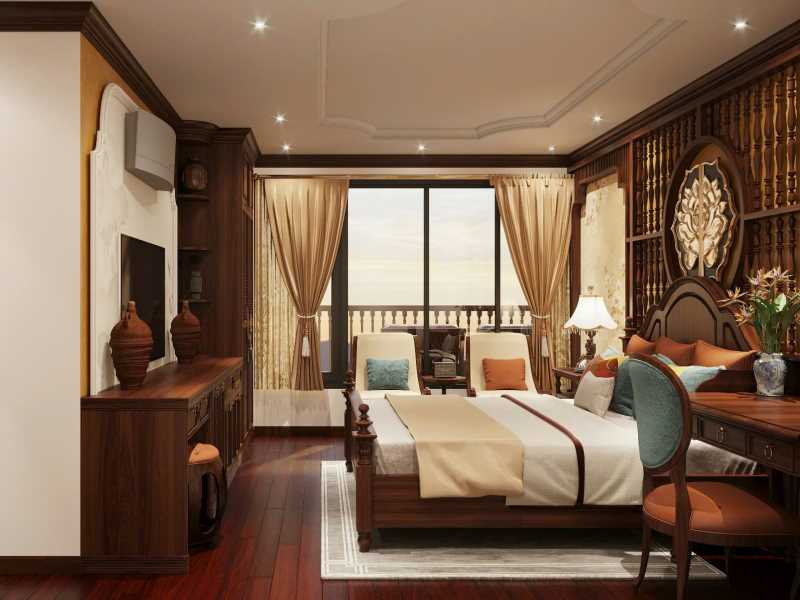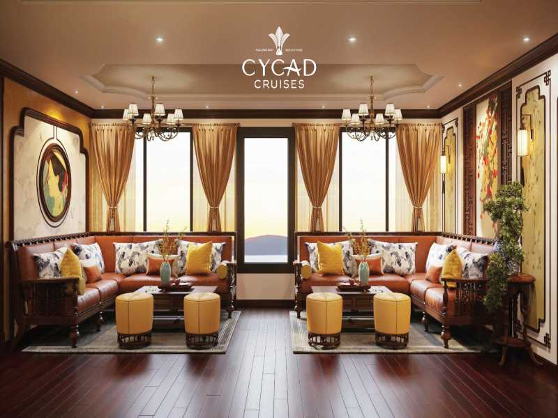 Cycad Cruise, the first 5-star cruise in Bai Tu Long Bay, features a striking Indochine-inspired design that blends classic elegance with modern comfort. This pinnacle of luxury vessel offers elite amenities including a panoramic mini pool, the Ginger Lounge & Bar, and a professional Spa & Massage center. On the 2D1N journey, guests will explore the pristine Thien Canh Son Cave, relax in the Cong Do Area, and discover the authentic local culture of Vung Vieng Village.