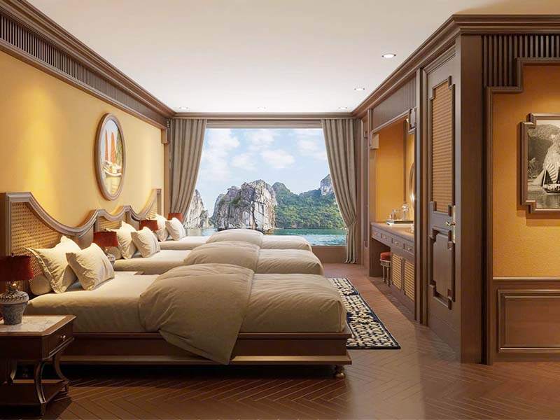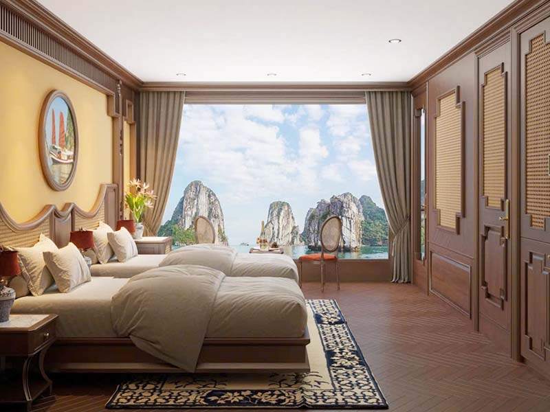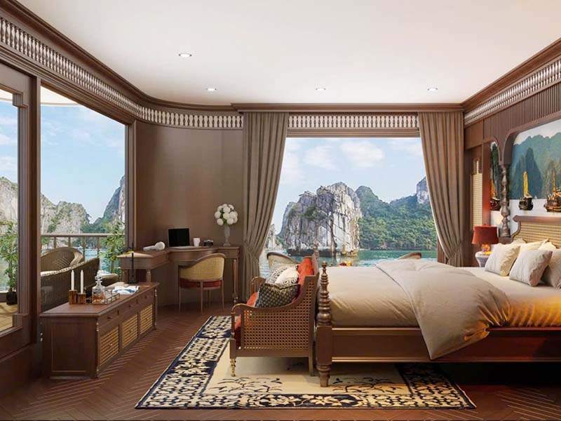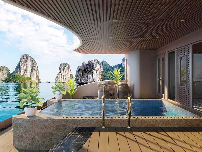 CYCAD GRAND CRUISE is a brand-new masterpiece of luxury set to debut in July 2026, offering an extraordinary journey through the pristine landscapes of Bai Tu Long Bay. Designed for those seeking tranquility and elegance, this vessel features a unique route that avoids the crowds, providing 1.5 hours more cruising time than standard tours. Each sophisticated cabin is an oasis of comfort, featuring private balconies, en-suite bathrooms, and high-end amenities. Onboard, guests can indulge in 100% authentic Vietnamese cuisine at the panoramic restaurant, relax on the expansive sundeck during Happy Hour, or enjoy the excitement of squid fishing at night. From kayaking in Vung Vieng village to exploring the hidden gems of Cong Do, Cycad Grand Cruise promises a soulful and refined maritime escape.