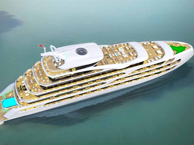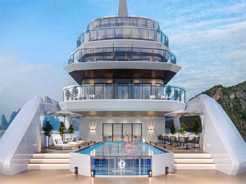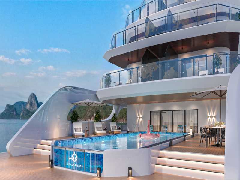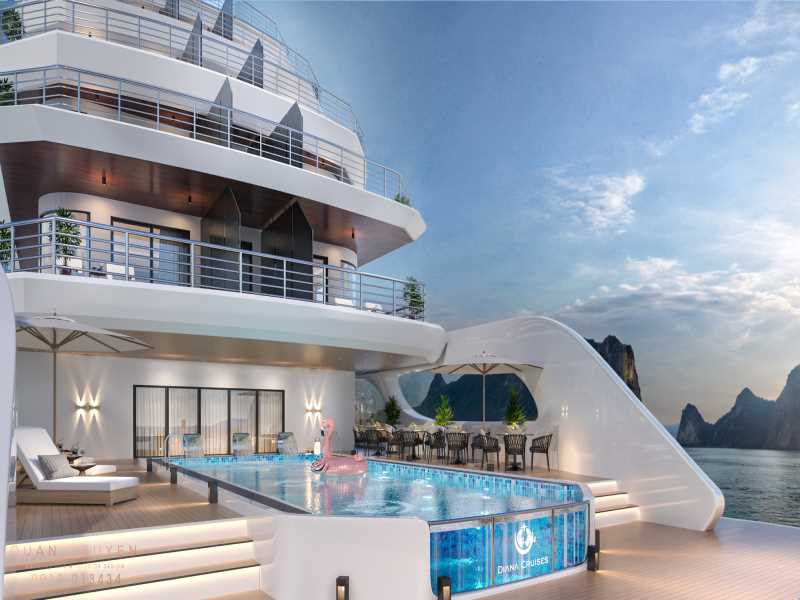 Official launch: 15 November 2025. Diana Cruise is a brand-new luxury vessel inspired by the elegance of the Goddess Diana, offering a sophisticated retreat in Lan Ha Bay. This modern 6-deck ship features 02 convenient elevators and premium amenities like a four-season pool, mini-golf, and a pilot cockpit lounge. During the 2D1N journey, guests will explore the mystical Dark and Bright Cave and enjoy the serene beauty of the bay with activities like kayaking and a sunset sky bar party.