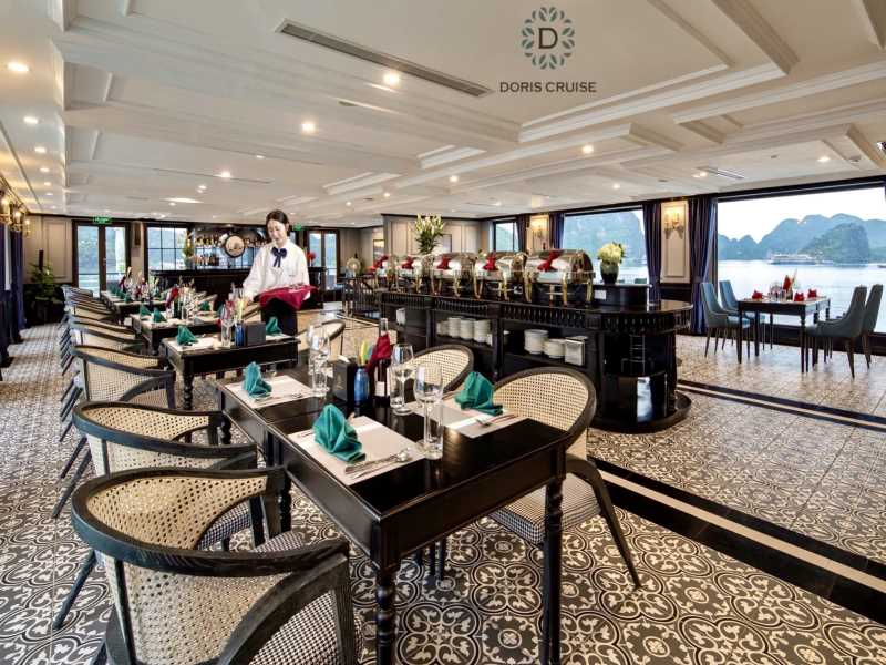 Doris Cruise is a luxury masterpiece featuring a modern and elegant design, providing a high-end escape through Halong Bay & Lan Ha Bay. Doris Cruise is equipped with premium facilities such as a front-deck outdoor jacuzzi, a professional spa, and 25 stylish suites with private balconies. Throughout the 3D2N voyage, guests can kayak in the Tra Bau Area, explore the Dark & Bright Cave, cycle in Viet Hai Village, and swim at the beautiful Ba Trai Dao Beach.