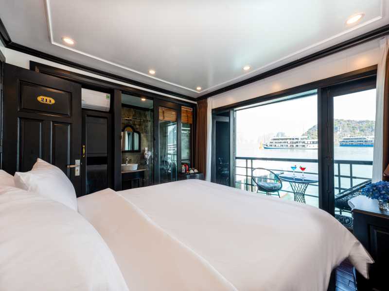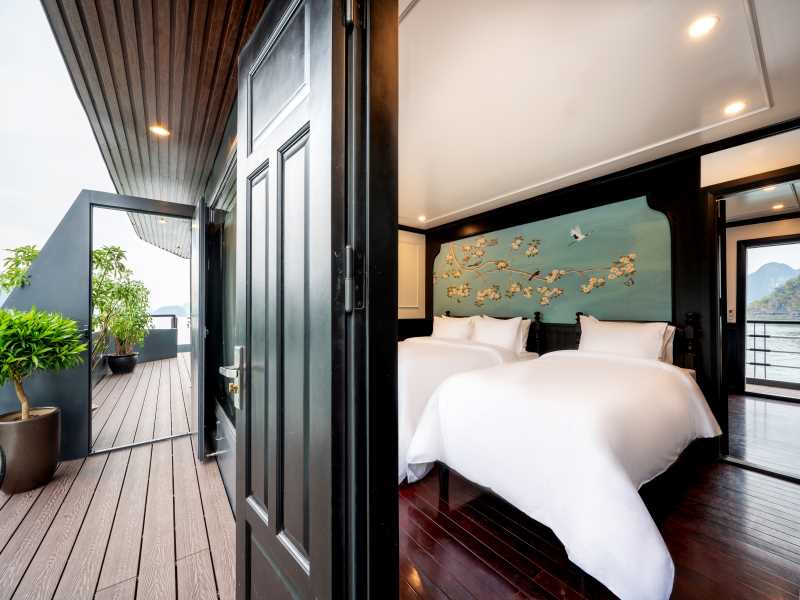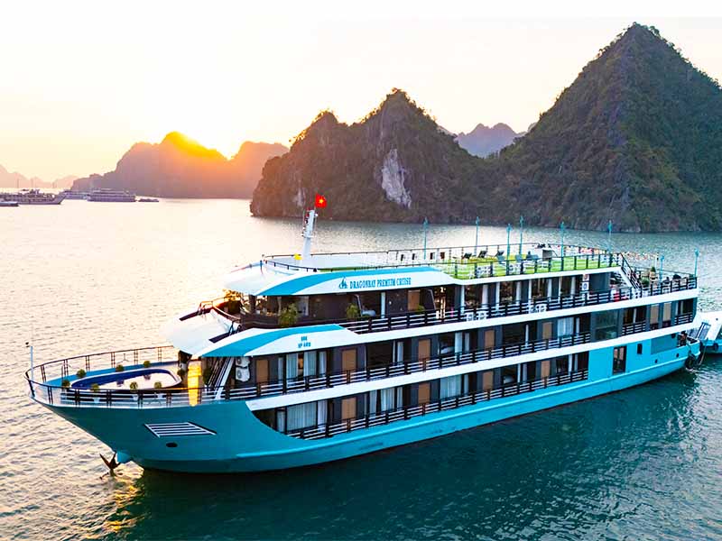 Dragon Bay Premium Cruise brings a touch of nostalgic Indochine luxury to the emerald waters of Halong Bay & Lan Ha Bay, featuring 26 elegant cabins all equipped with private balconies and bathtubs. This sophisticated iron vessel offers premium escapes with a refreshing mini-pool, the refined L’Sun Restaurant, and a panoramic sundeck for unforgettable sunset parties. Your 3D2N voyage dives deep into the bay's natural wonders, taking you to the hidden Tra Bau Area, the pristine Ba Trai Dao Beach, the rustic Viet Hai Village, and the sparkling Dark & Bright Cave.