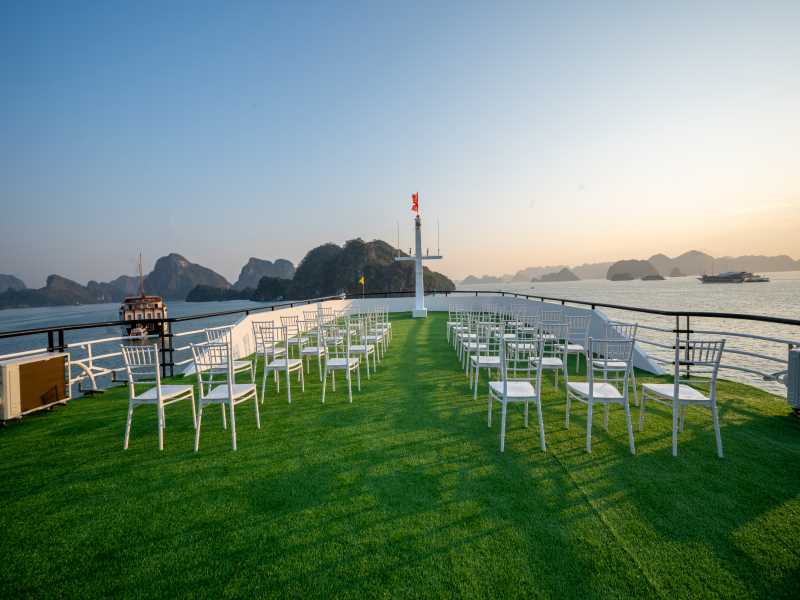 17:00. We return to Dragonbay Premium Cruise and join some interesting activities such as cooking demonstration, sunset p,arty and relaxing on the sundeck to