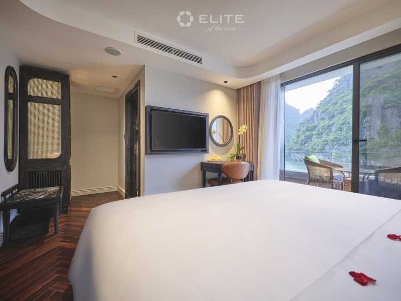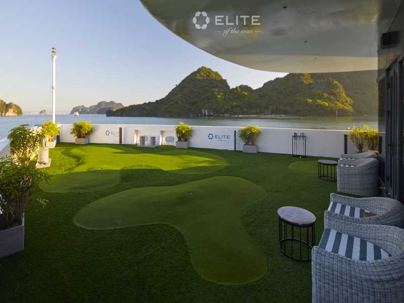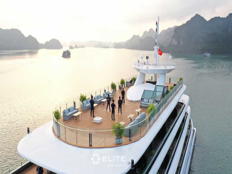 Elite of the Seas is a 6-star super-yacht designed with a contemporary and sleek "everlasting elegant" style, offering a redefined luxury experience in Lan Ha Bay. Elite of the Seas Lan Ha Bay features elite amenities including an infinity swimming pool, a mini-golf course, a wine cellar, and 35 majestic suites with private terraces. During the 3D2N voyage, guests can immerse themselves in the beauty of Ao Ech Area, enjoy cycling in Viet Hai Village, and explore the mystical Dark and Bright Cave by kayak or bamboo boat.