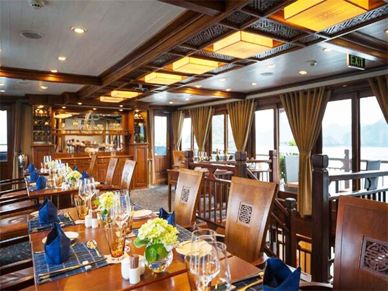 13.15 Savor an exquisite buffet lunch while our cruise glides leisurely through the breathtaking landscapes of Bai Tu Long Bay.