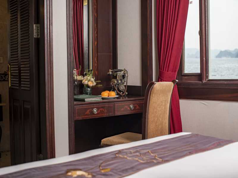 Indochina Sails Cruise welcomes you to a world of classic wooden elegance in Halong Bay, featuring 23 cozy cabins designed with a "floating palace" aesthetic inspired by royal tradition. Indochina Sails Cruise Halong Bay offers a nostalgic escape with its sophisticated Lotus Restaurant, relaxing massage services, and a spacious sundeck for panoramic views. Your 2D1N voyage is perfectly timed to explore the majestic Sung Sot Cave or the mysterious Me Cung Cave, followed by a refreshing stop at the iconic Titop Island.