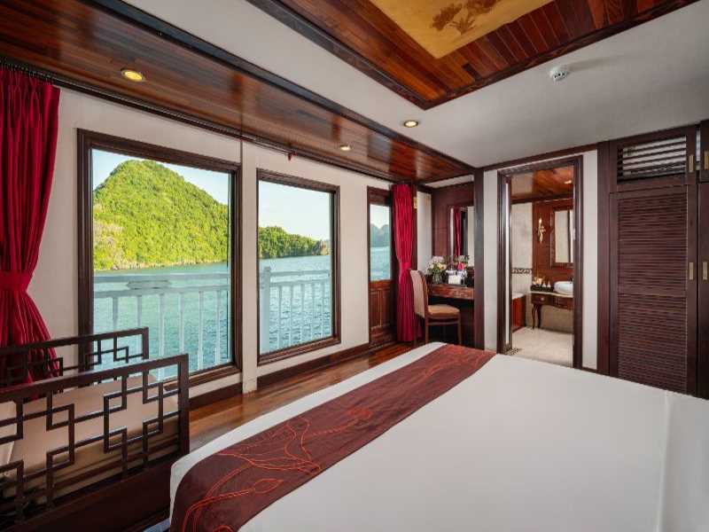 Indochina Sails Cruise invites you to experience the soul of Ha Long Bay, a UNESCO World Heritage site and one of the New Seven Natural Wonders of the World. With over 30 years of experience and more than 1 million guests served since 1993. A traditional wooden masterpiece, featuring 23 cabins that evoke the royal charm of a floating palace. Recently renovated in 2024, the ship offers a cozy yet sophisticated atmosphere with its elegant Lotus Restaurant, professional massage services, and a classic sundeck. On Indochina Sails Cruise 3D2N adventure is a deep dive into the bay’s heritage, visiting the magnificent Sung Sot or Me Cung Cave, the panoramic heights of Titop Island, and the rustic beauty of a traditional Floating Village.