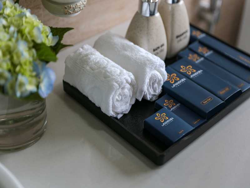 - Welcome drink, cold handkerchief, fresh fruits basket, two bottles of mineral water in each cabin.