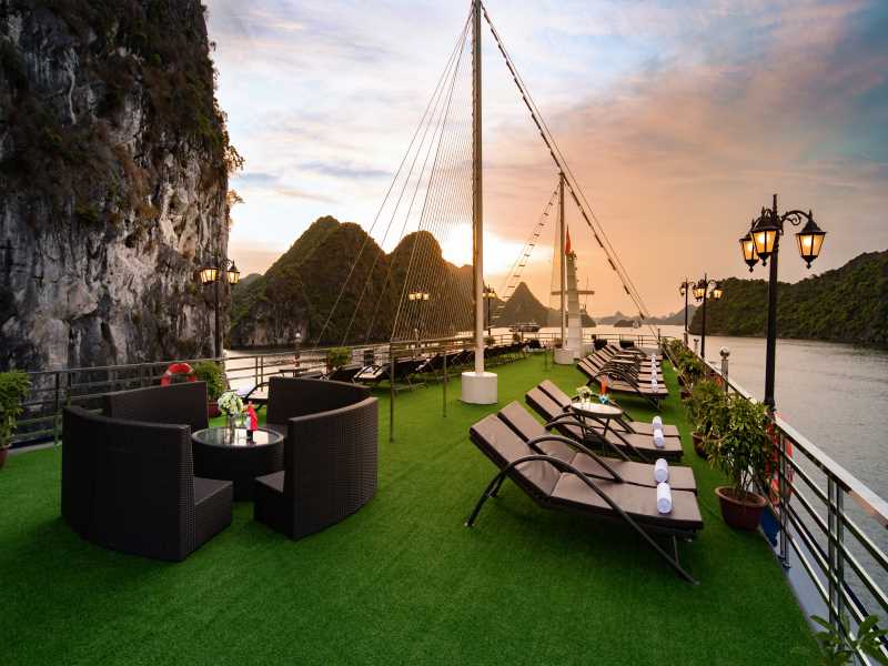 16:00: The Cruise sails through Lan Ha Bay. The area is surrounding of extraordinary limestone karst landscapes. We progress to Ong Cam Area of Lan Ha Bay- a separate part of Ha Long Bay. This is a quiet tourist paradise in Vietnam, enjoy swimming in the crystal-clear waters of the Bay.