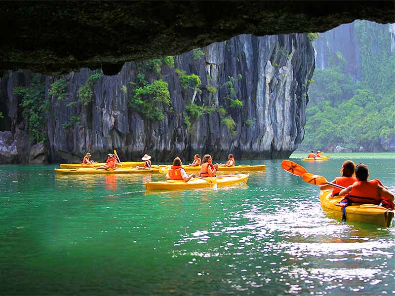 07:45 - 09:00 Kayaking to explore Halong Bay. If you are lucky, you can catch great photos of mischievous monkeys jigging up and down around the cliffs