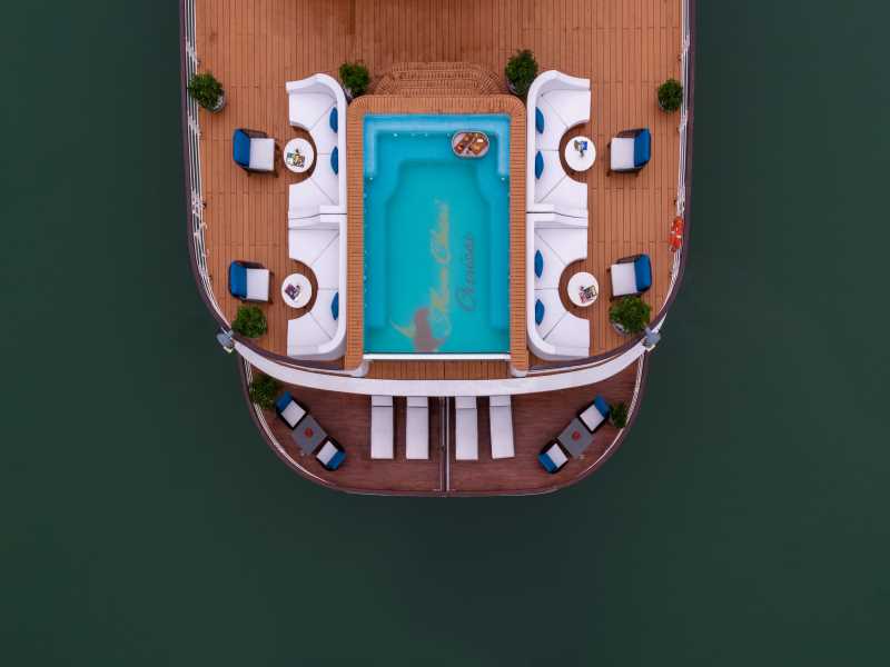 Set sail on the MON CHERI CRUISE, a stunning boutique vessel that fuses French elegance with classic oriental style across its 14 luxurious, all-balcony suites. Designed to offer a romantic sanctuary on the waters of Halong Bay & Lan Ha Bay, MON CHERI CRUISE features world-class amenities like an infinity jacuzzi pool, a mini-golf course, and a dedicated kids' club. Your 2D1N adventure perfectly balances relaxation and discovery, taking you from the serene Tra Bau Area to the natural wonders of Trung Trang Cave on the lush Cat Ba Island.