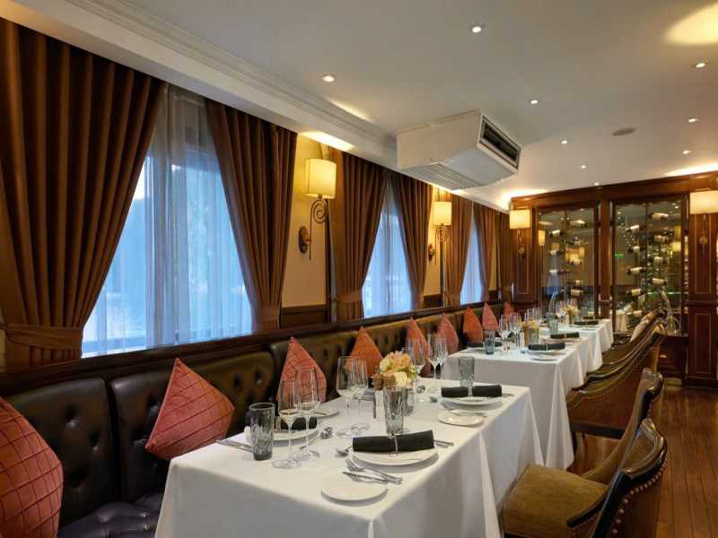 08:50 Breakfast will be served at Le Marin Restaurant while the cruise passes by Thien Cung and Dau Go Cave and the Fighting Cock Islet.