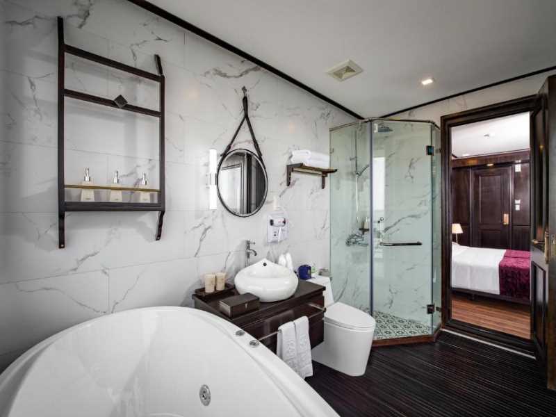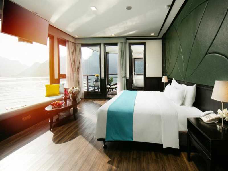 Enjoy the nightlife of the bay from the deck. Immerse yourself in music. Tasteful cocktail at the bar. Otherwise, you can go for the squid fishing with the sailors or simply relax in the room and watch Ha Long Bay from the balcony.