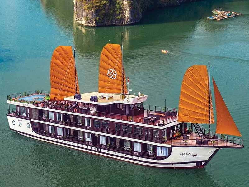 Discover the timeless charm of Peony Cruise, a luxury boutique vessel featuring 20 elegant cabins that masterfully blend a sturdy iron exterior with warm, classic wooden interiors. Every suite boasts a private balcony and bathtub, while the rooftop infinity jacuzzi and professional spa offer the ultimate relaxation as you sail through both Lan Ha Bay & Cat Ba Island. PEONY CRUISE'S 3D2N voyage invites you to explore the serene Tra Bau Area, cycle through the rustic Viet Hai Village, and uncover the natural wonders of Trung Trang Cave on the lush Cat Ba Island.