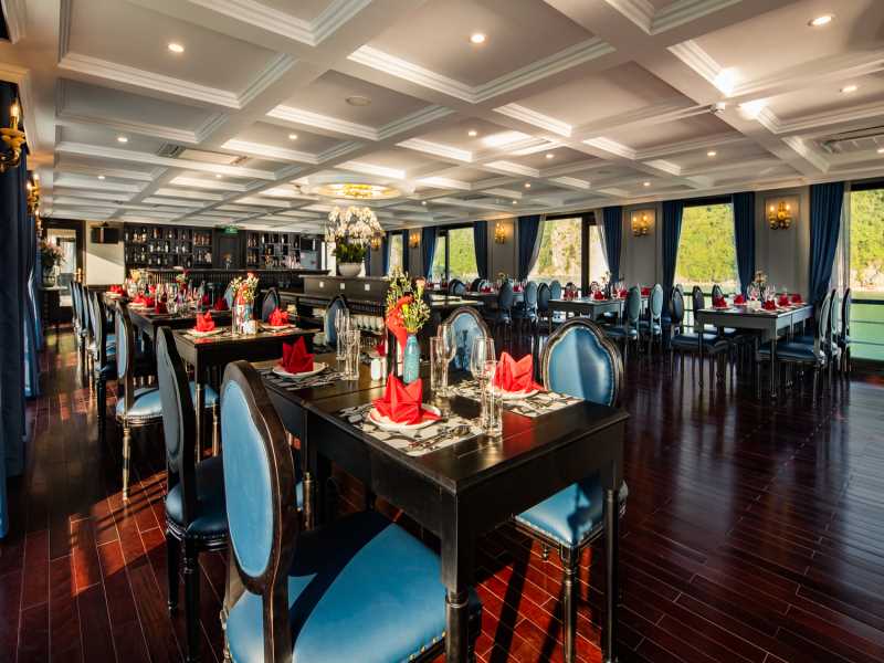 Rosy Cruise is a luxury boutique vessel featuring a modern design that beautifully combines iron and wood for an elegant feel throughout Halong Bay & Lan Ha Bay. Rosy Cruise offers premium amenities, including a seasonal pool, a professional spa, and a sky bar on the top deck for panoramic sunset views. During the 2D1N journey, guests will enjoy a serene voyage through Lan Ha Bay and explore the mysterious Dark and Bright Cave by kayak or bamboo boat.