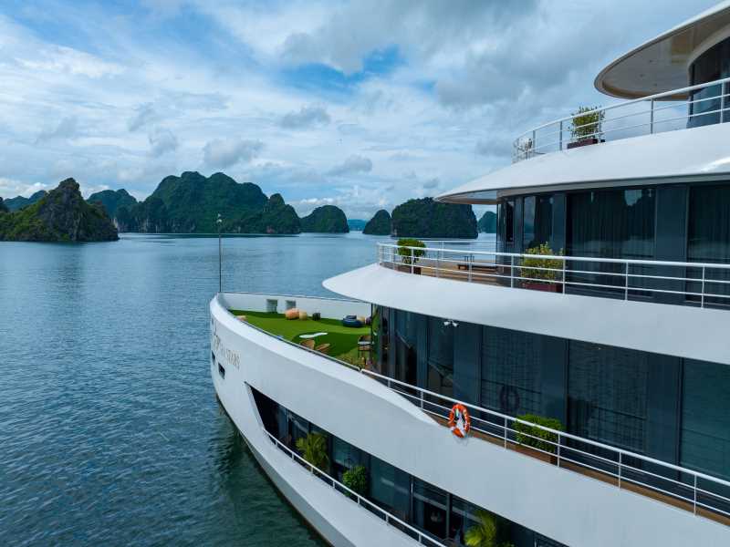 12:15 - 12:30 Board the Sea Stars Cruise. Enjoy a welcome drink while the cruise manager briefs you about the special itinerary crossing both Bai Tu Long Bay & Ha Long Bay, along with safety regulations.