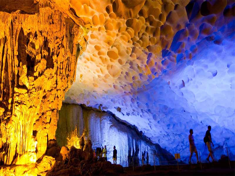 Relaxing on the boat with a view of amazing limestone, we will continue the trip to the brilliant cave named “Me Cung” cave (Maze cave)