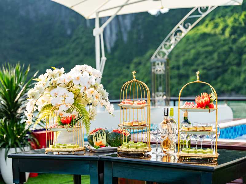 16:30: Returning to the ship for a Sunset Party, enjoying a Live Traditional Music Performance as the ship cruises back to Tuan Chau Harbor. You will have a great time chilling out with friends on the upper deck with unforgettable moments.